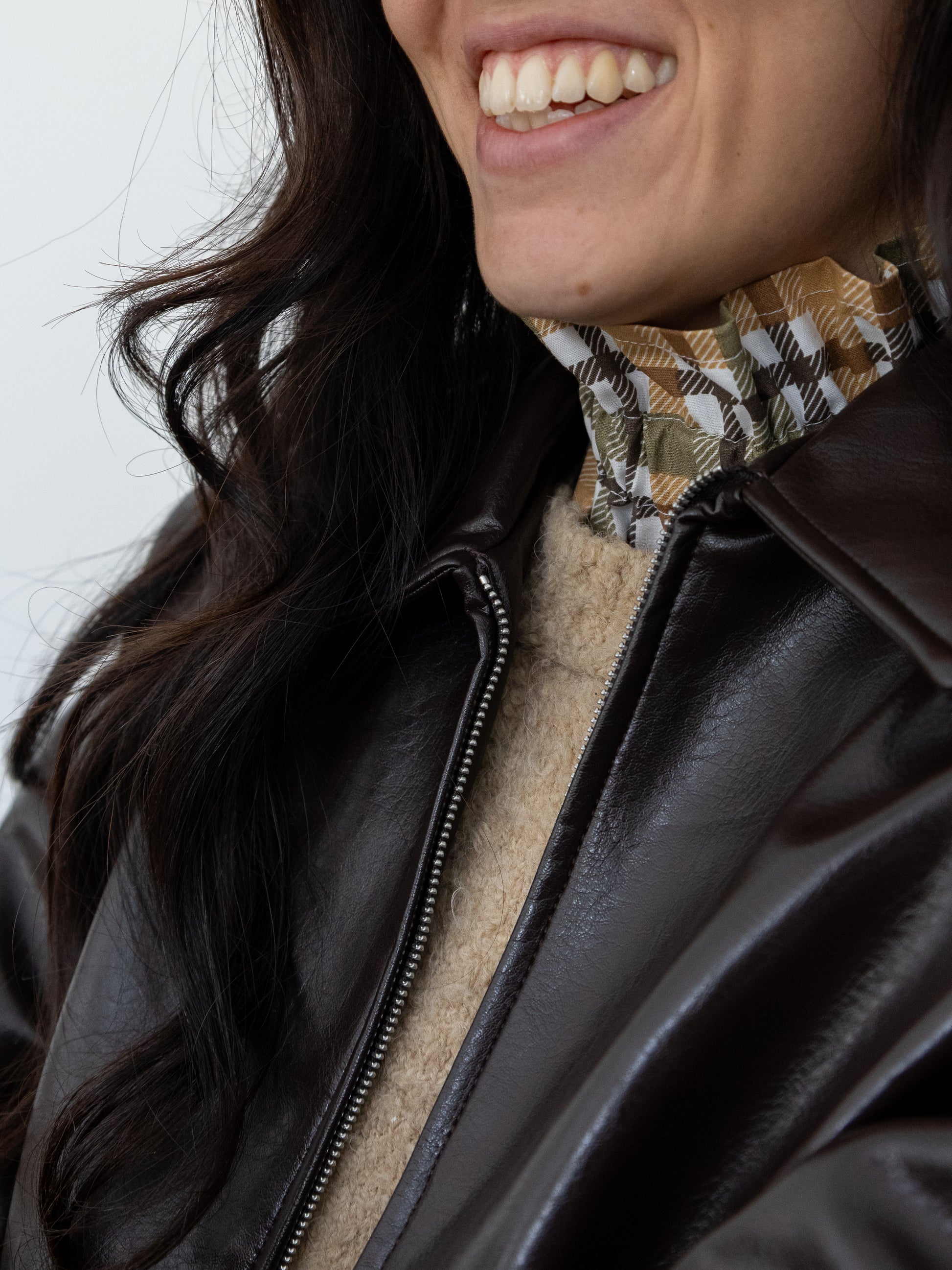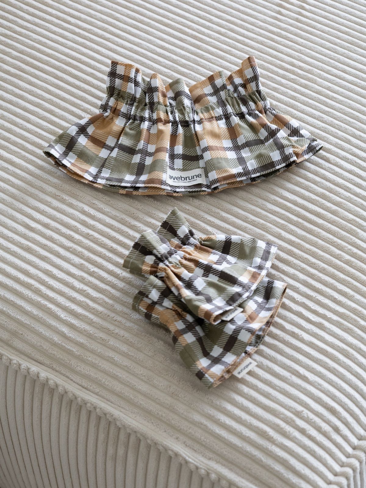 Un motif tartan aux couleurs automnales, camel, kaki et marron, pour réchauffer vos tenues avec style.